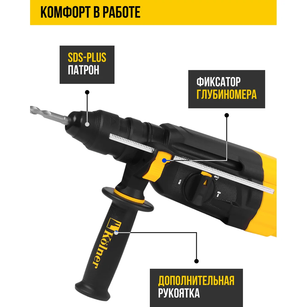 Перфоратор Kolner SDS-PLUS с доп.БЗП патроном, KBH 3-28K, 3 режима, 28мм, 2.9Дж, 8030300206