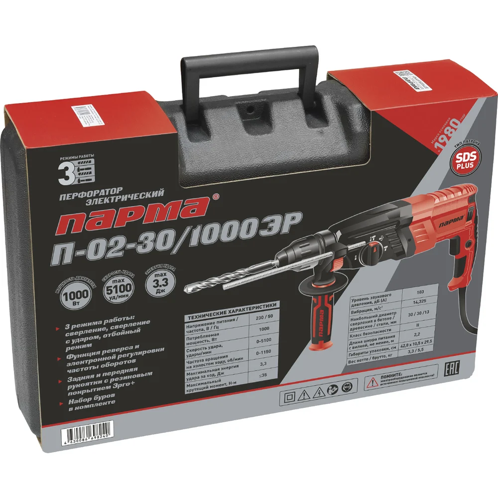 Купить Перфоратор Парма П-02-30/1000ЭР 02.027.00009 по лучшей цене с доставкой - интернет магазин №1 в России