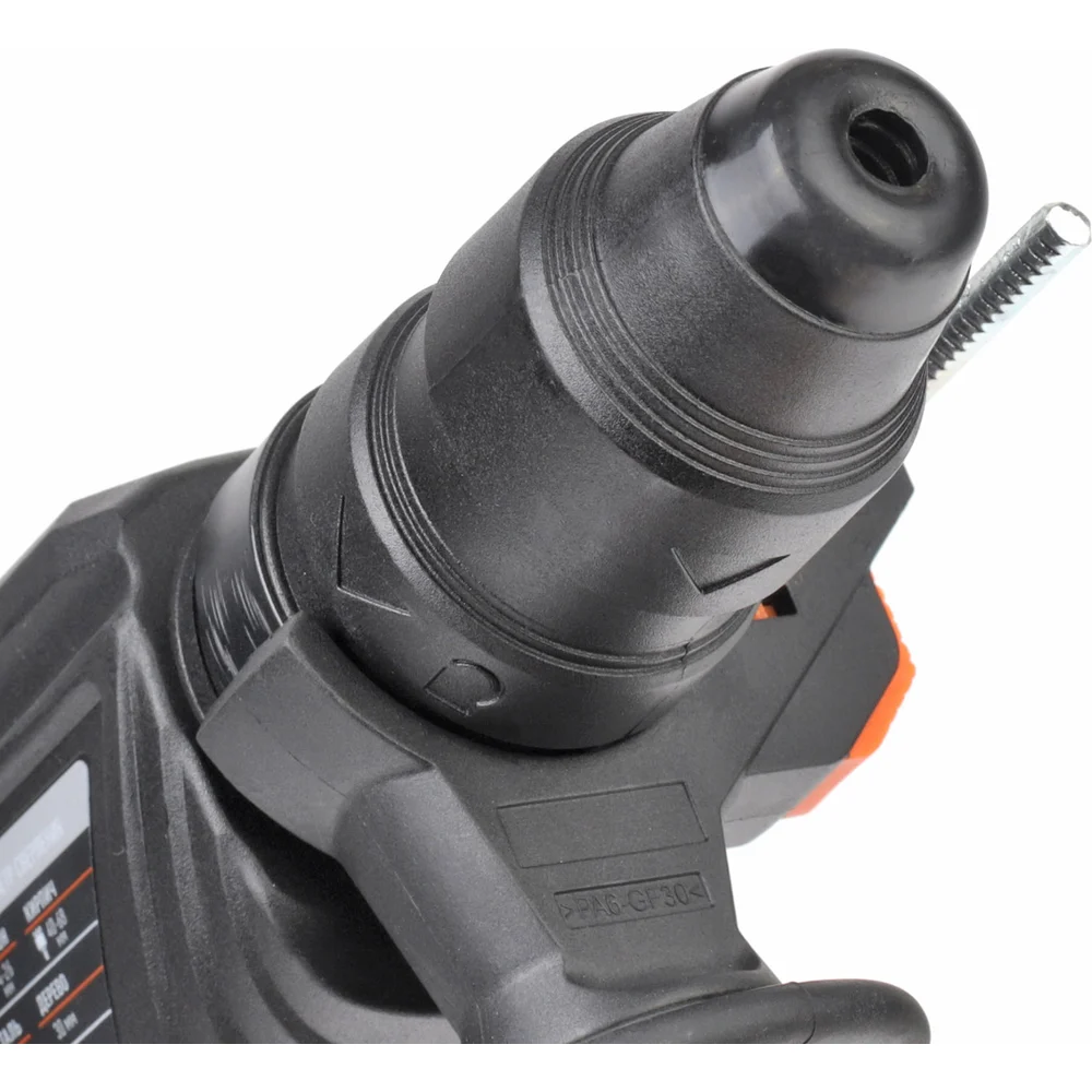 Комплектация Перфоратор; Дополнительная рукоятка; Ограничитель глубины сверления; Сверлильный патрон; Пластиковый кейс; Инструкция по эксплуатации