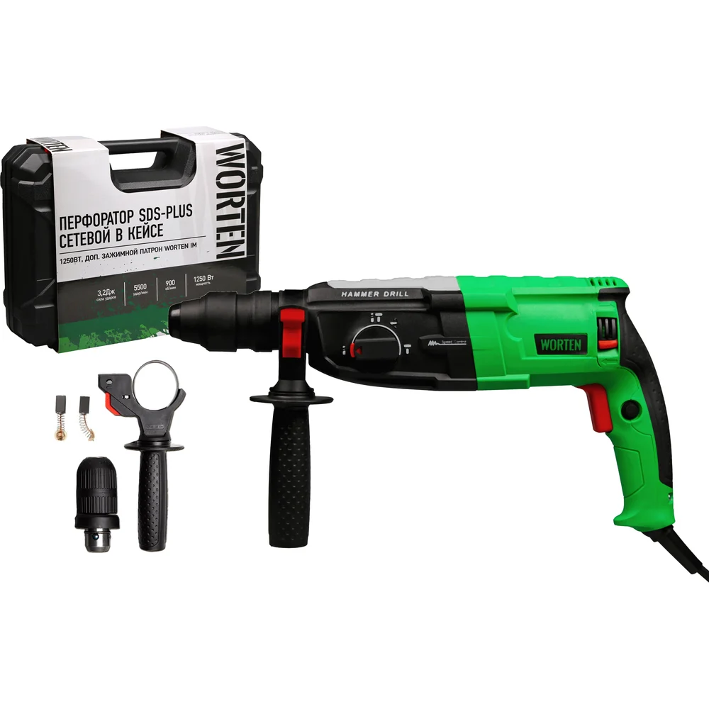 Купить Перфоратор SDS-plus сетевой в кейсе с зажимным патроном 1250Вт WORTEN КА-90000716 по лучшей цене с доставкой - интернет магазин №1 в России