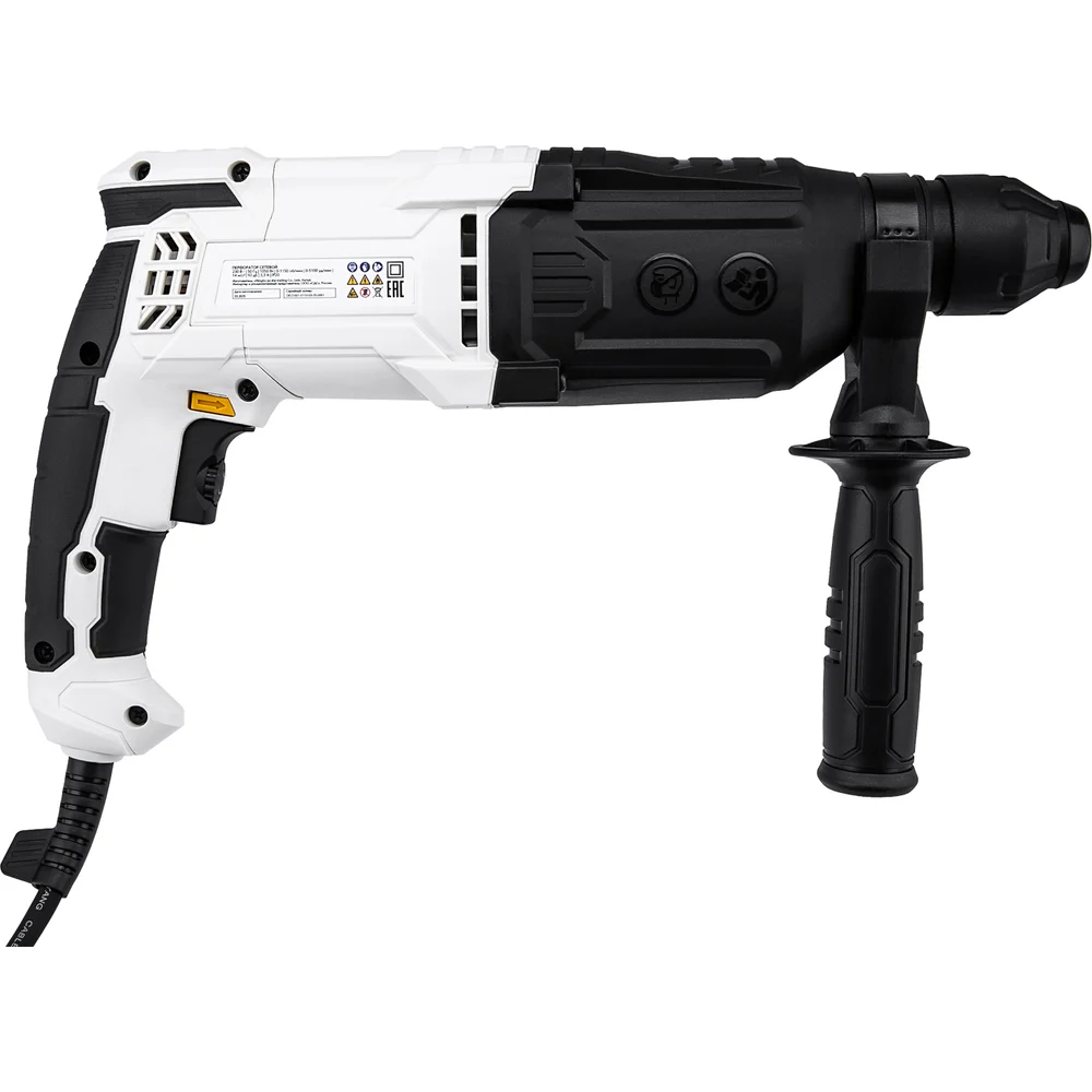 Комплектация Перфоратор; Рукоятка боковая; Ограничитель глубины; Долото лопатовое SDS-plus 14x20x250 мм; Долото острое SDS-plus 14x250 мм; Сверло SDS-plus 8 мм; Сверло SDS-plus 10 мм; Сверло SDS-plus 12 мм; Руководство по эксплуатации с гарантийным талоном; Кейс; Упаковка