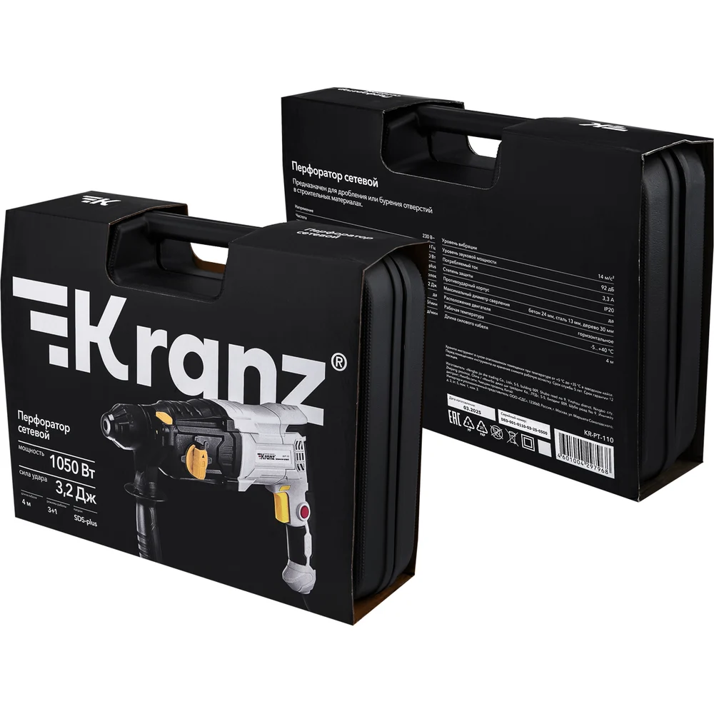 Купить Перфоратор сетевой KRANZ SDS-plus, 1050Вт, 3,2Дж, в кейсе KR-PT-110 по лучшей цене с доставкой - интернет магазин №1 в России