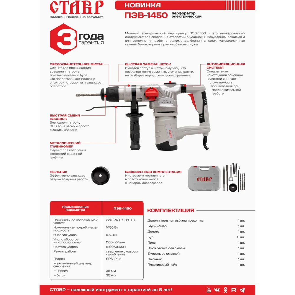 Купить Перфоратор Ставр Пэв-1450 1450 Вт 9030300234 по лучшей цене с доставкой - интернет магазин №1 в России