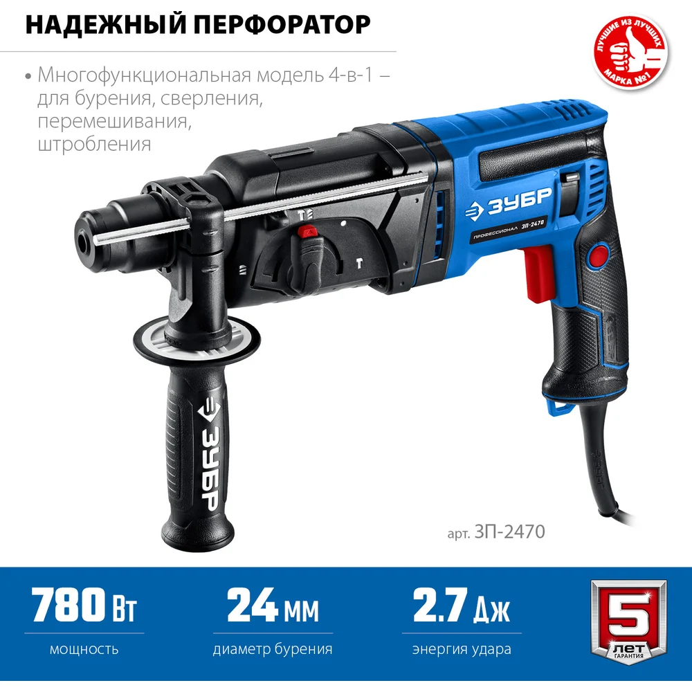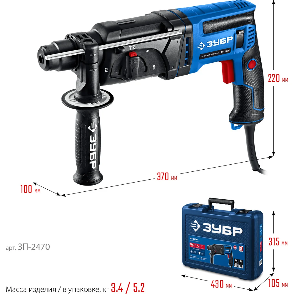 Купить Перфоратор ЗУБР Профессионал SDS Plus 24 мм, 780 Вт ЗП-2470 по лучшей цене с доставкой - интернет магазин №1 в России