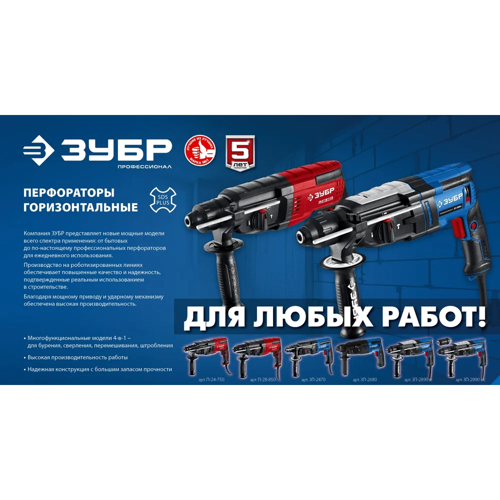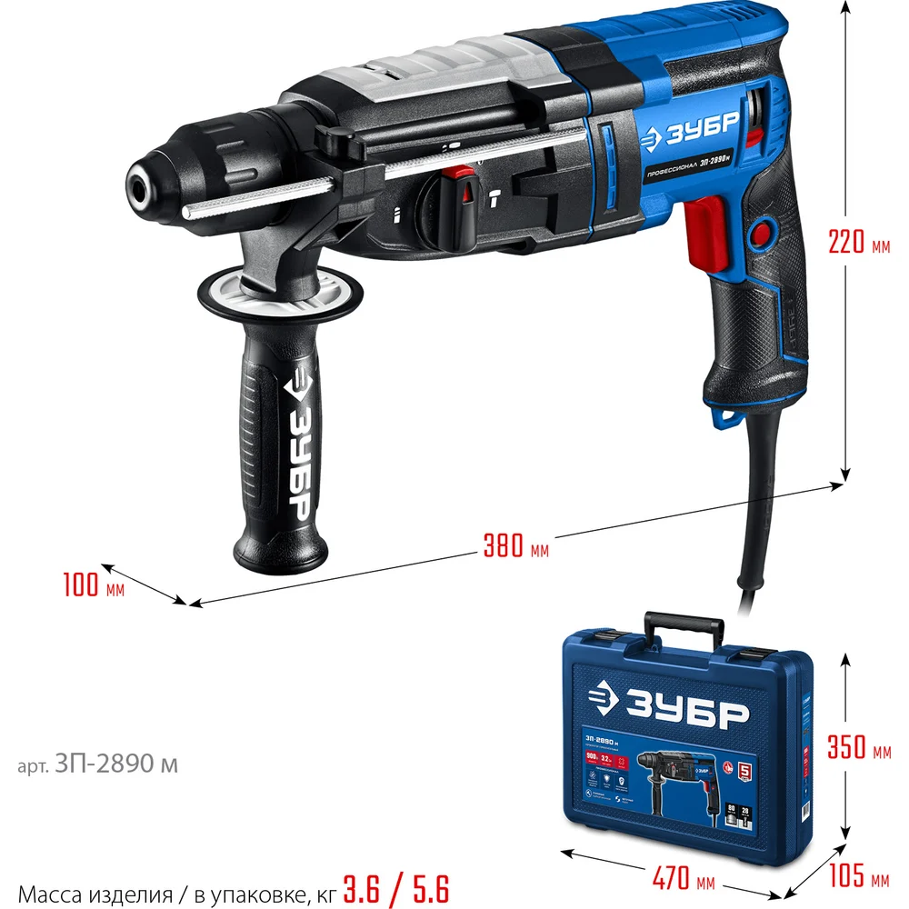 Купить Перфоратор ЗУБР Профессионал SDS Plus 28 мм, 900 Вт, мет. корпус ЗП-2890 м по лучшей цене с доставкой - интернет магазин №1 в России