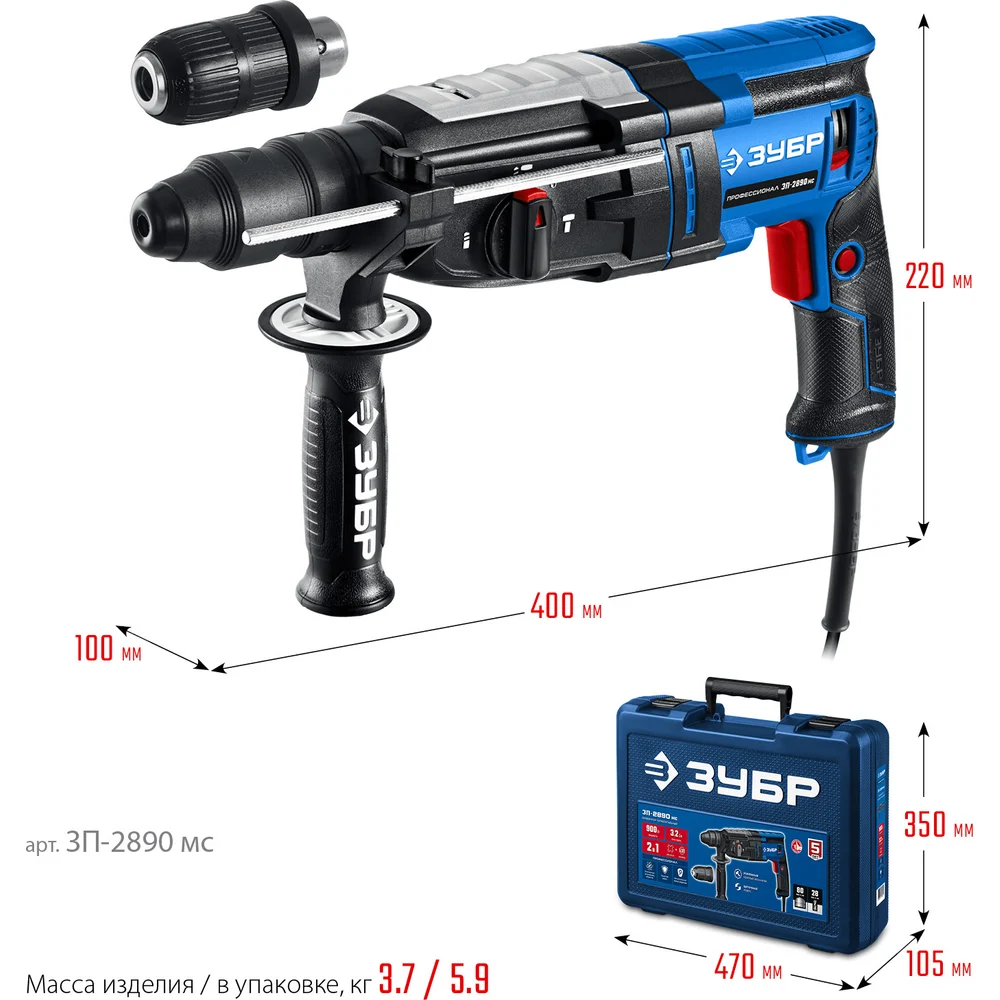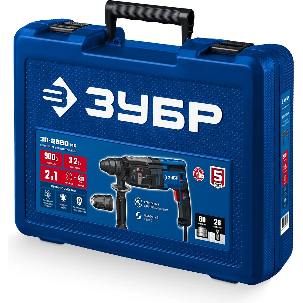 Купить Перфоратор ЗУБР Профессионал SDS Plus + БЗП 28 мм, 900 Вт ЗП-2890 мс по лучшей цене с доставкой - интернет магазин №1 в России