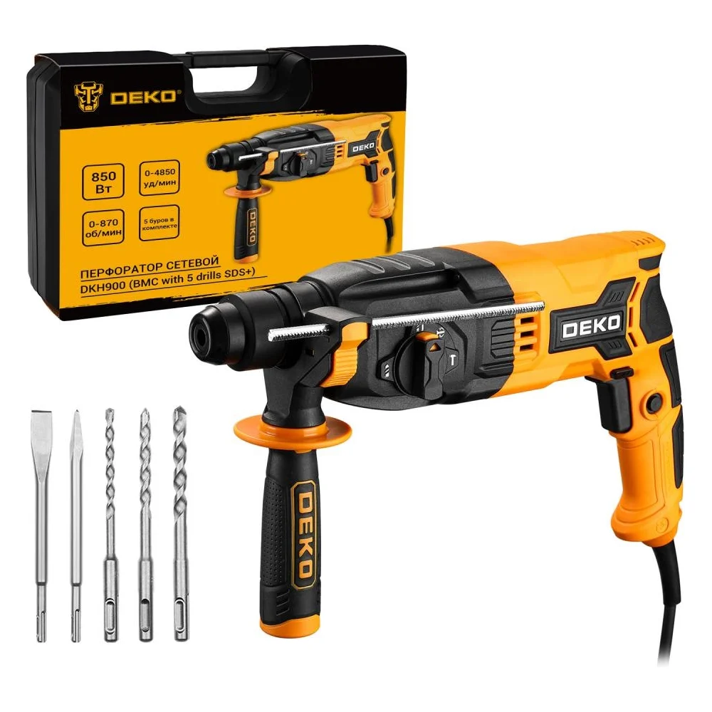 Купить Сетевой перфоратор DEKO DKH900 в кейсе с набором из 5 буров SDS+, 850 Вт 083-1044 по лучшей цене с доставкой - интернет магазин №1 в России