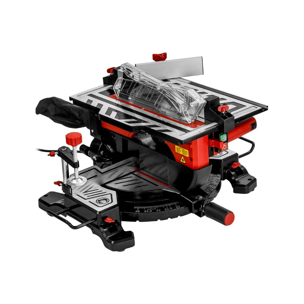 Комплектация Параллельная направляющая - 1 шт; Угловой упор - 1 шт.; Толкатель - 1 шт; Ключ рожковый - 1 шт; Ключ шестигранный - 1 шт; Пылесборный мешок - 1 шт; Дополнительные боковые упоры - 2 шт