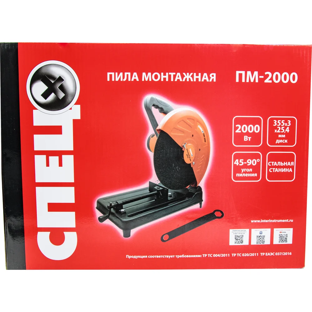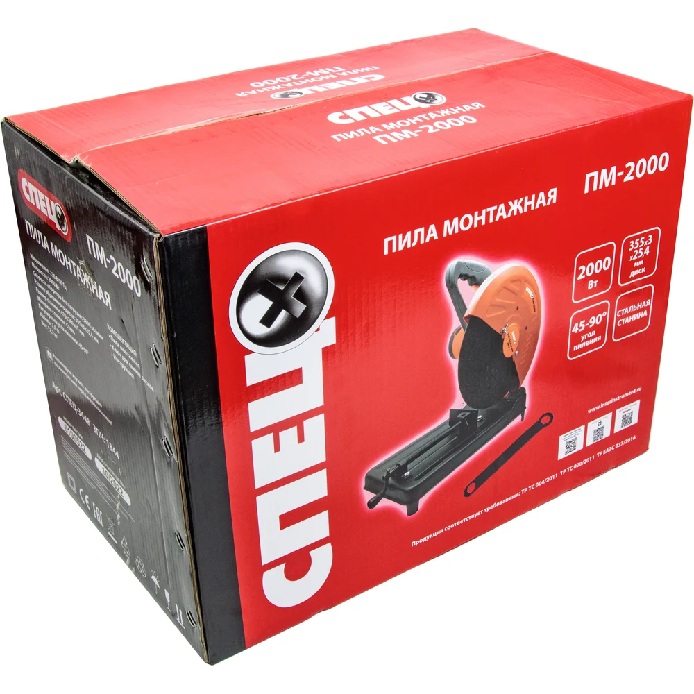 Купить Монтажная пила Спец ПМ-2000 2000Вт, диск 355-325, 4мм, стальная станина 3448 СПЕЦ-3448 по лучшей цене с доставкой - интернет магазин №1 в России