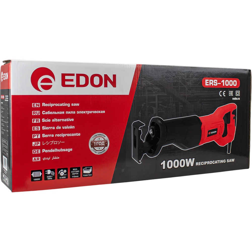 Купить Пила сабельная электрическая EDON ERS-1000 (1000Вт; 0-3000 ход/мин; 20мм; 115мм) 42302 по лучшей цене с доставкой - интернет магазин №1 в России