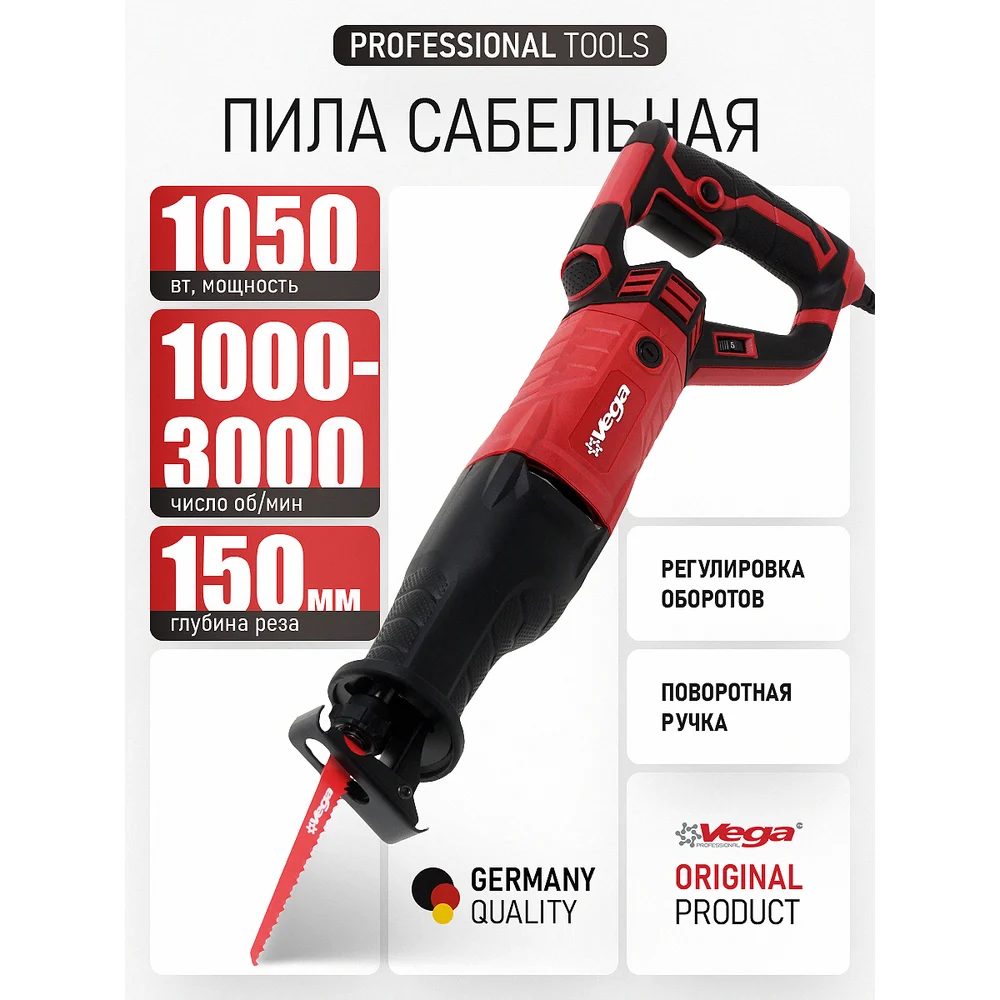 Купить Пила сабельная Vega 1050 Вт, 1000-3000 об/мин, 150 мм VS-1500 по лучшей цене с доставкой - интернет магазин №1 в России