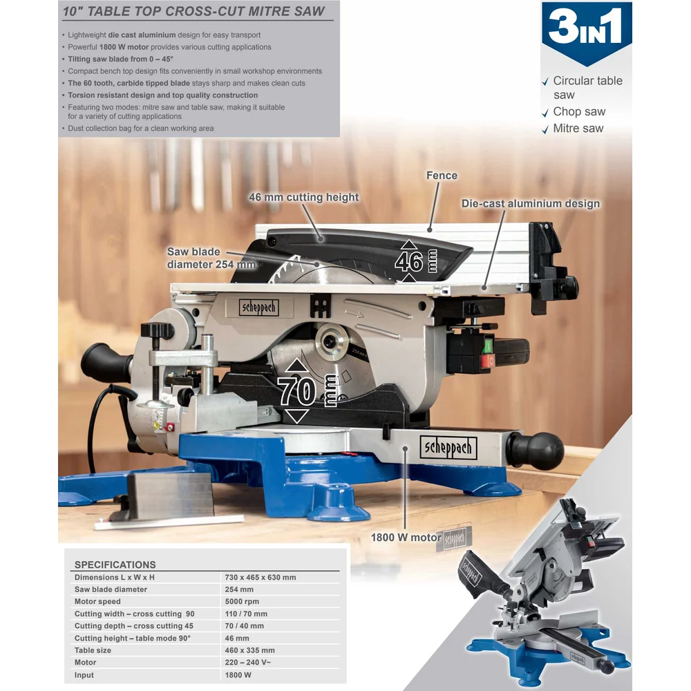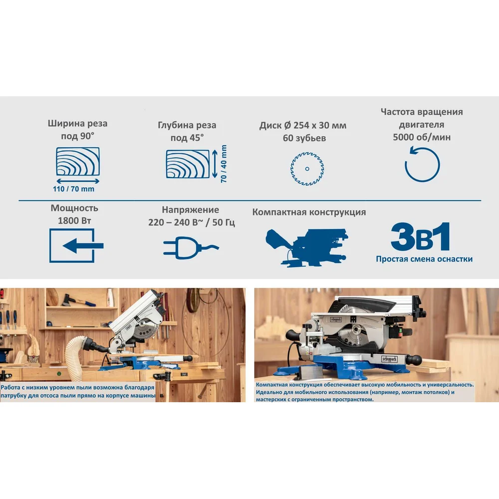 Купить Настольная торцово-циркулярная пила 1800 Вт Scheppach HM100T 5901103901 по лучшей цене с доставкой - интернет магазин №1 в России
