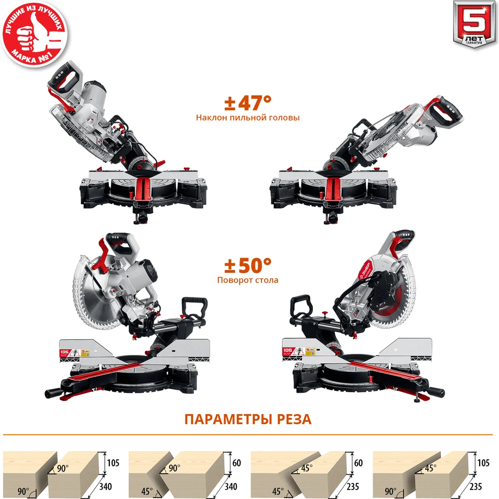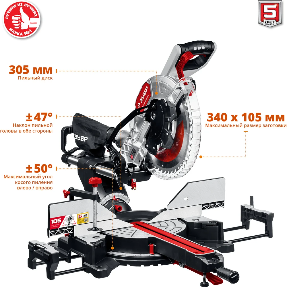 Купить Торцовочная пила с протяжкой ЗУБР ЗПТ-305-1800 ПЛ по лучшей цене с доставкой - интернет магазин №1 в России