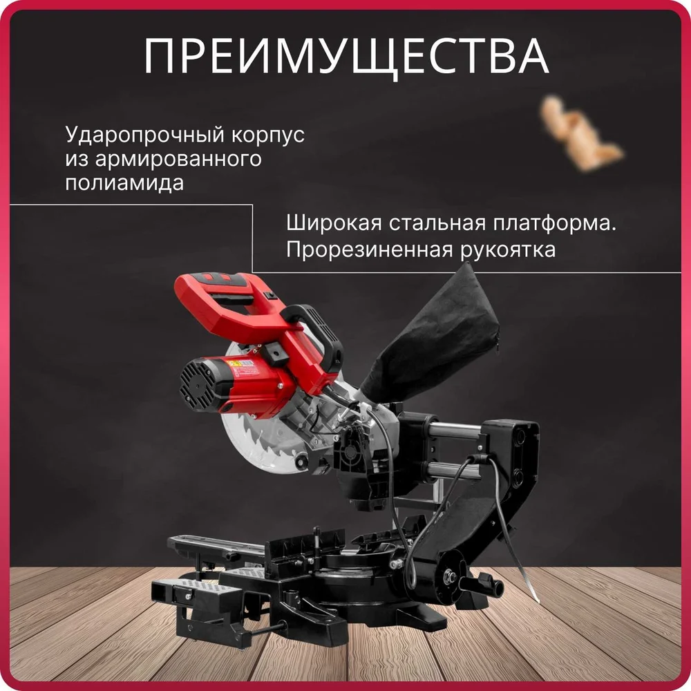 Комплектация Торцовочная пила; Диск пильный 210x30 мм 24 зуба; Струбцина; Пылесборный мешок; Ключи для зажима оснастки; Паспорт; Инструкция; Коробка