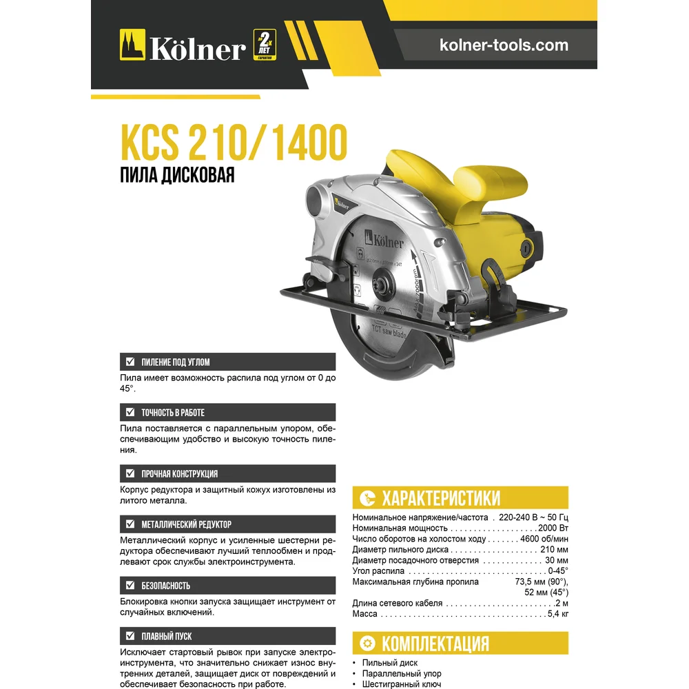 Купить Дисковая пила Kolner KCS 210/2000 8031000146 по лучшей цене с доставкой - интернет магазин №1 в России