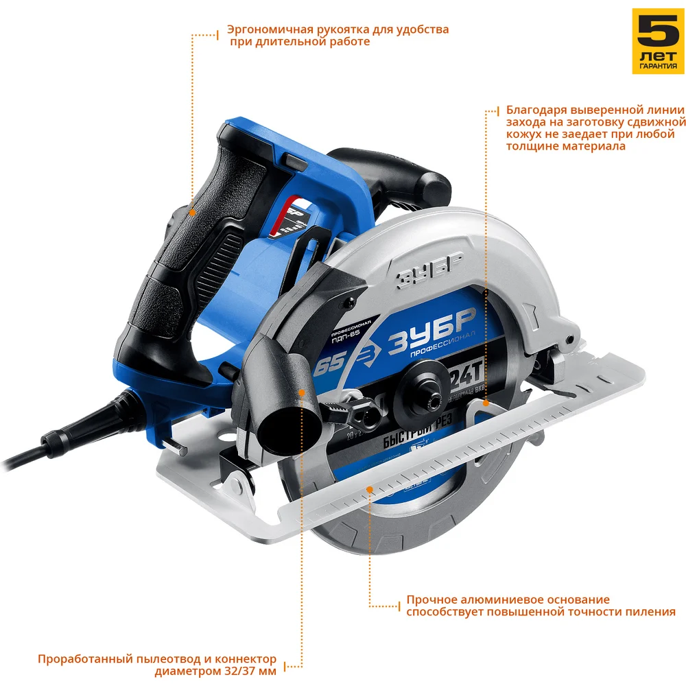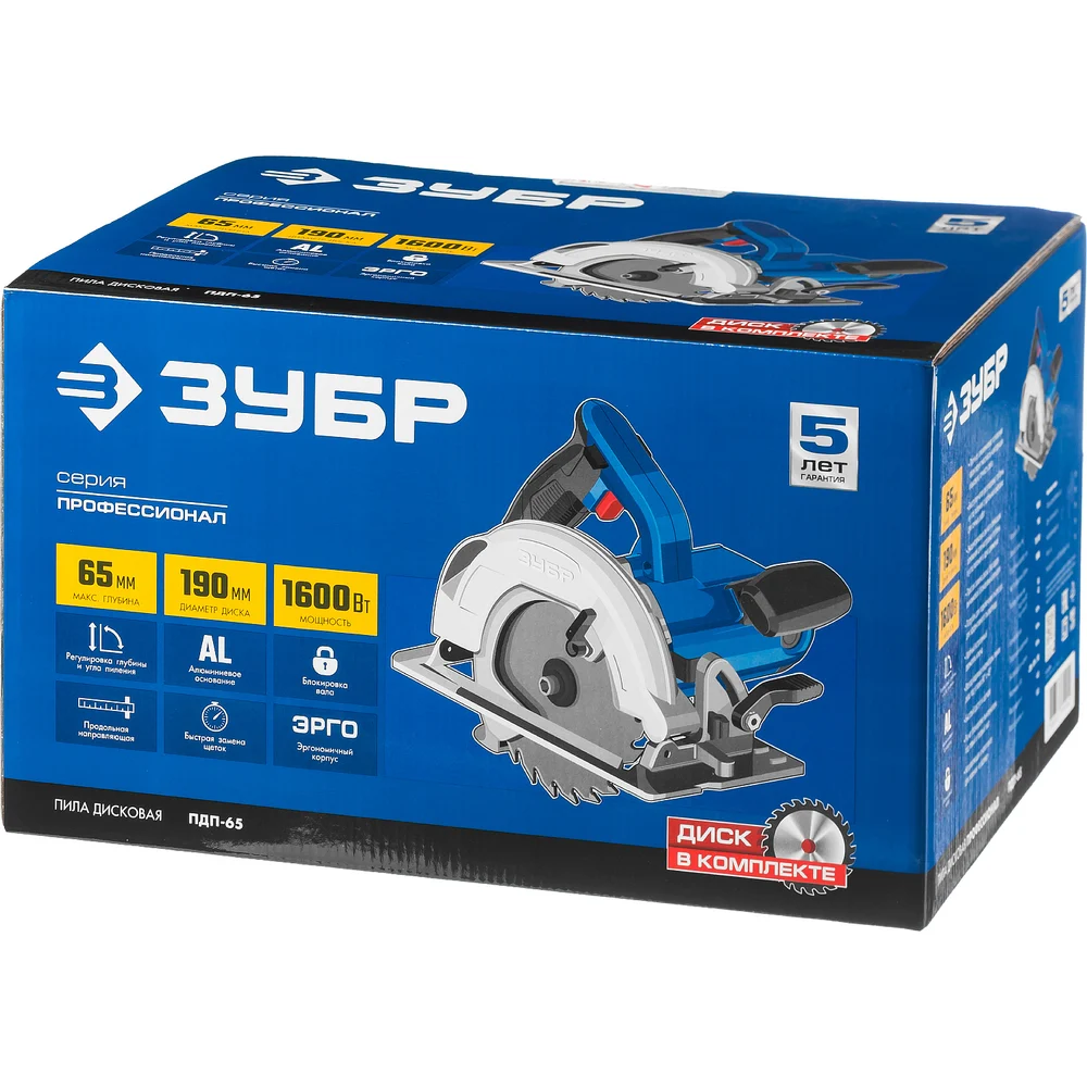 Купить Дисковая пила Зубр ПРОФЕССИОНАЛ ПДП-65 по лучшей цене с доставкой - интернет магазин №1 в России