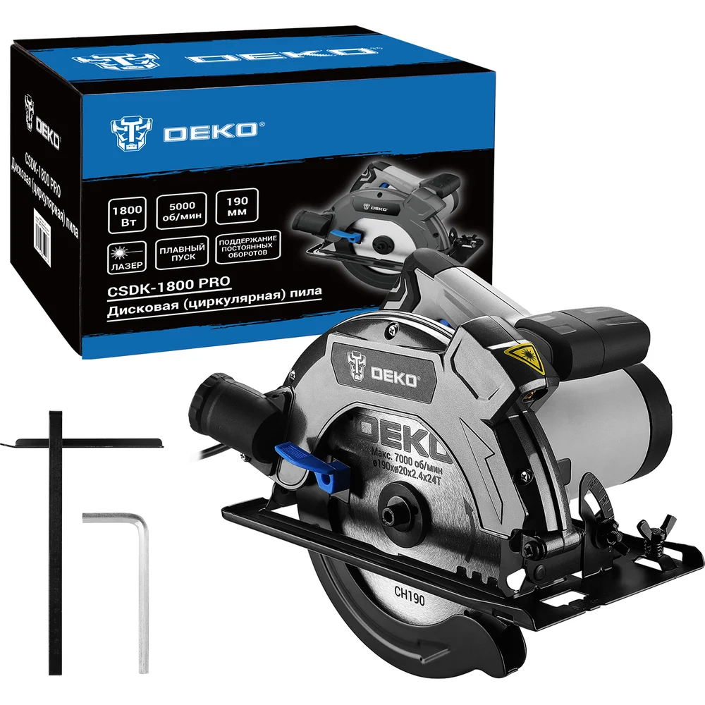 Купить Дисковая (циркулярная) пила DEKO CSDK-1800 PRO, 1800Вт, 190мм диск поддержание оборотов, плавный пуск 085-1152 по лучшей цене с доставкой - интернет магазин №1 в России
