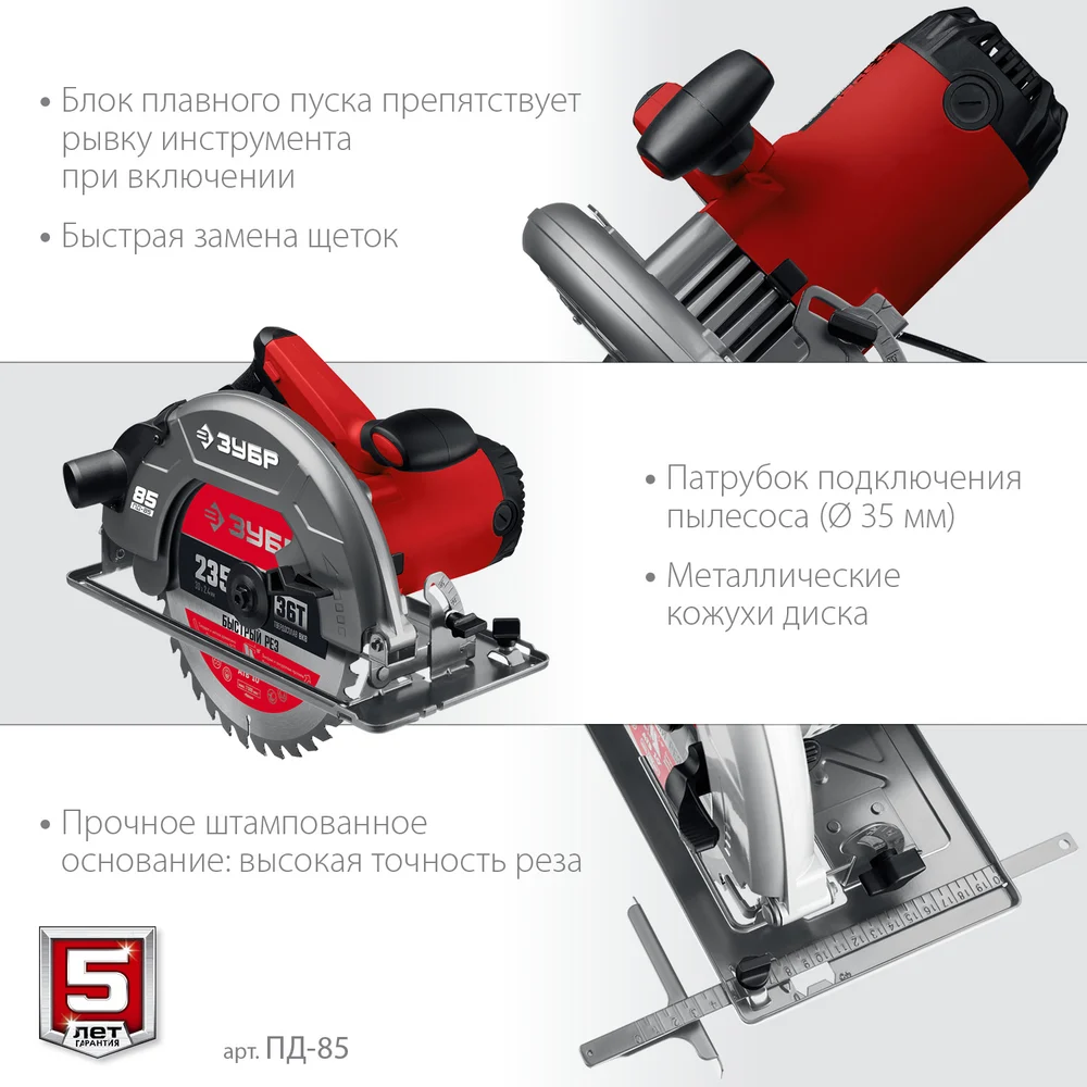 Купить Дисковая циркулярная пила ЗУБР диск 235 мм, 2200 Вт ПД-85 по лучшей цене с доставкой - интернет магазин №1 в России