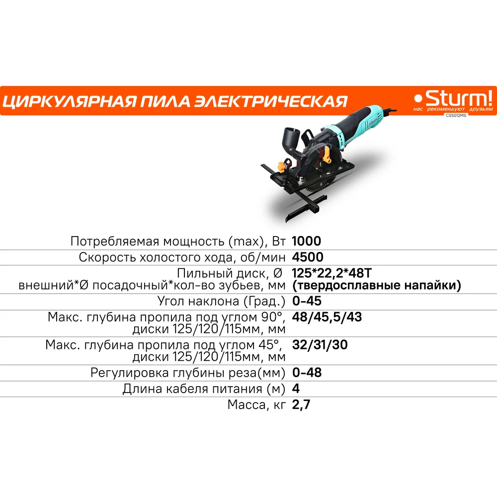 Купить Минициркулярная пила Sturm CS5012MS по лучшей цене с доставкой - интернет магазин №1 в России