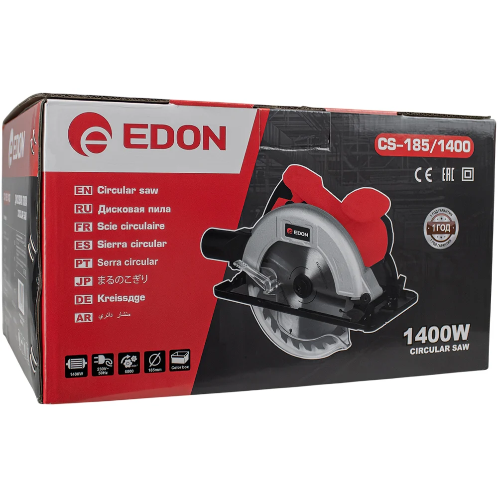 Купить Пила дисковая электрическая EDON CS-185/1400 (1400Вт;185х20х2.4х24Т; 6000об/мин; 62мм; 48мм) 42303 по лучшей цене с доставкой - интернет магазин №1 в России