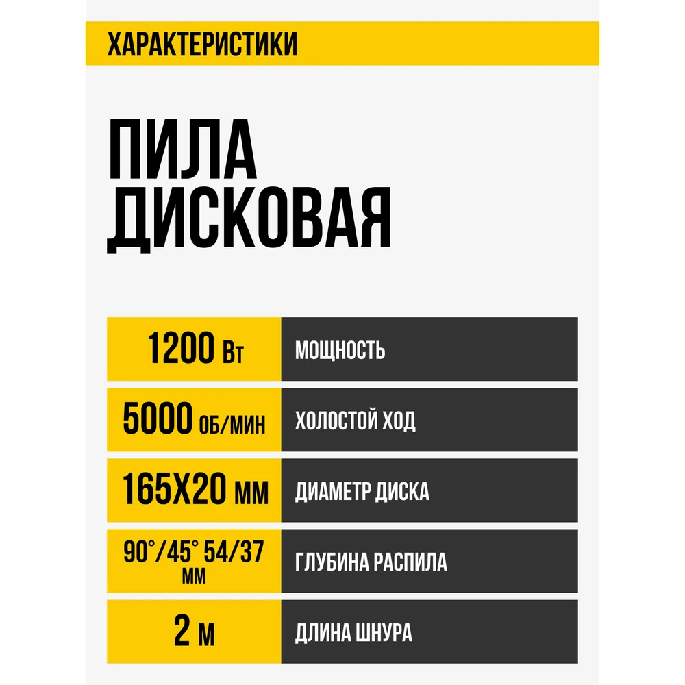Купить Пила дисковая Kolner 165мм, KCS 165/1200, 1200Вт, диск 160x20мм, глубина 54/37мм (90гр/45гр), 8031000166 по лучшей цене с доставкой - интернет магазин №1 в России