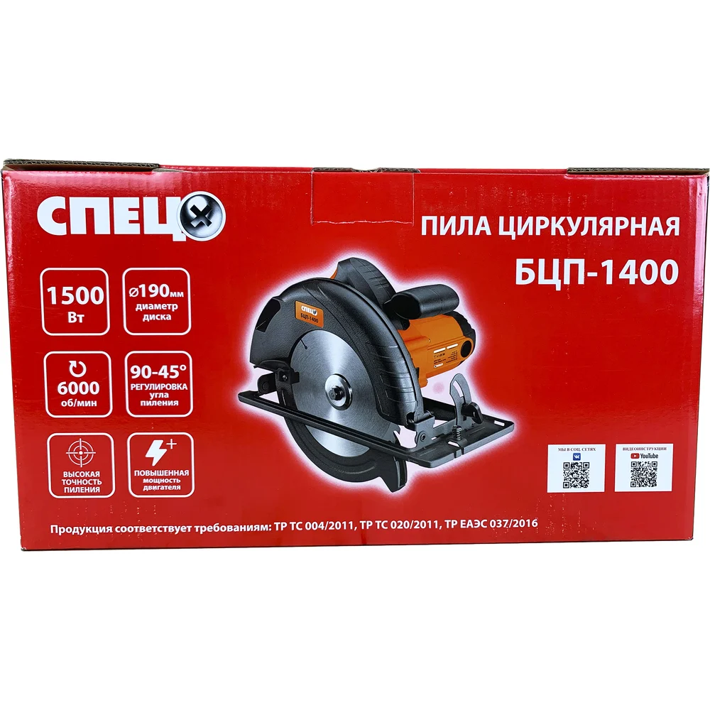 Купить Циркулярная пила Спец БЦП-1400 220 В/50 Гц, 1500 Вт, 190 мм, стальная опора, цв. коробка СПЕЦ-4056 по лучшей цене с доставкой - интернет магазин №1 в России