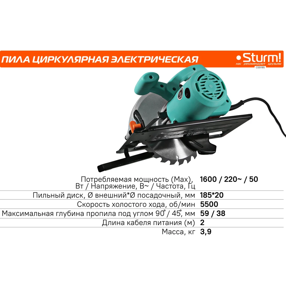 Купить Циркулярная пила Sturm CS51185 по лучшей цене с доставкой - интернет магазин №1 в России