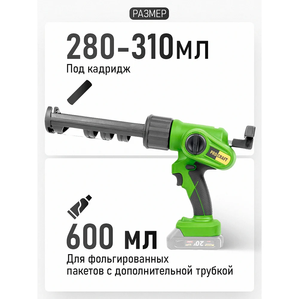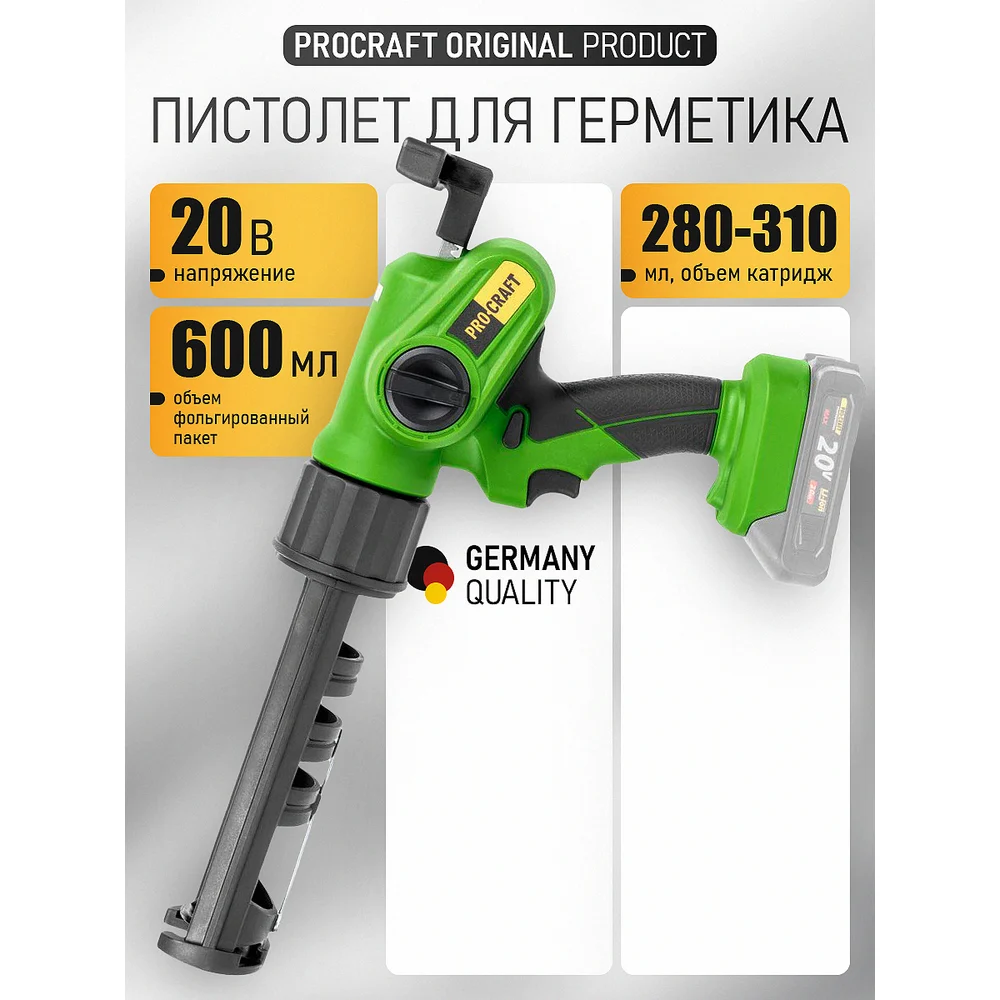 Купить Пистолет для герметика аккумуляторный PROCRAFT 20В, 310мл (Без АКБ и ЗУ) PC20 по лучшей цене с доставкой - интернет магазин №1 в России