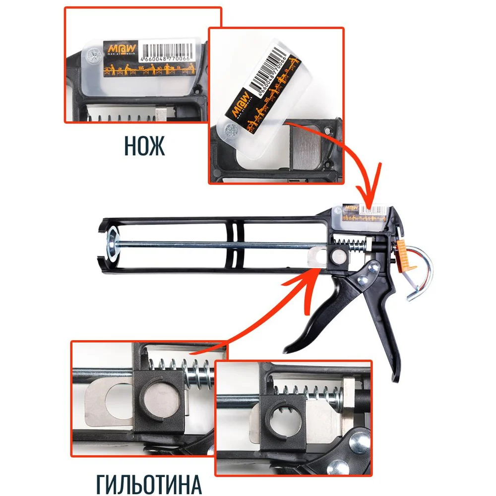 Купить Пистолет для герметика Men at Work скелетный с ножом 300мл v7006 по лучшей цене с доставкой - интернет магазин №1 в России