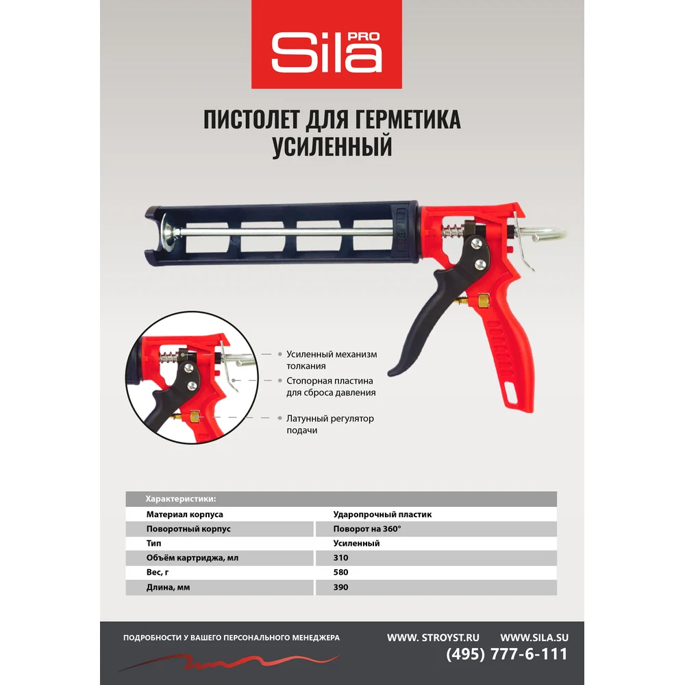 Купить Пистолет для герметика Sila 310 мл, усиленный, регулятор подачи 2210103 по лучшей цене с доставкой - интернет магазин №1 в России