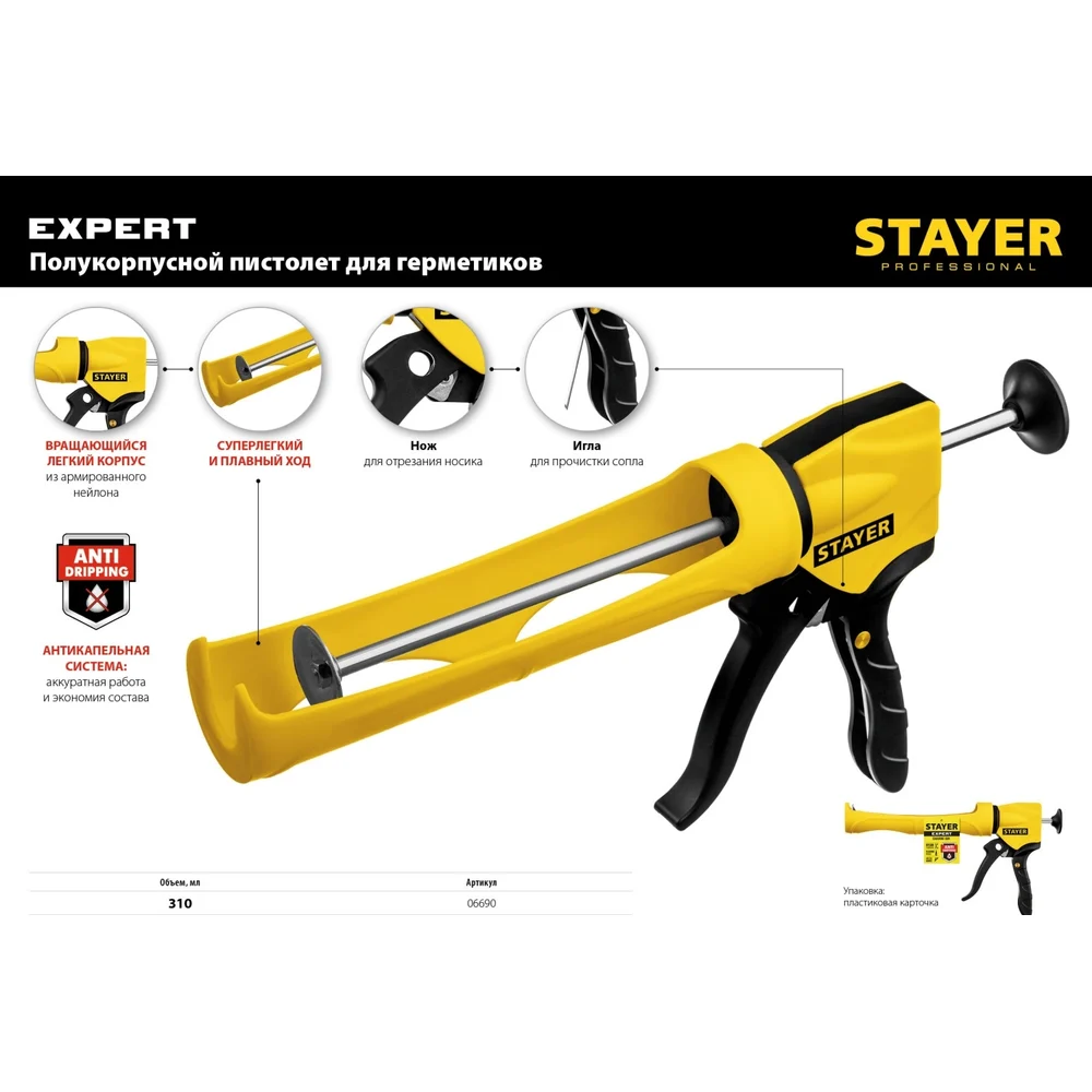 Купить Полукорпусной пистолет для герметика Stayer Expert 310 мл 06690 по лучшей цене с доставкой - интернет магазин №1 в России