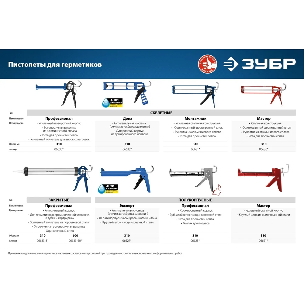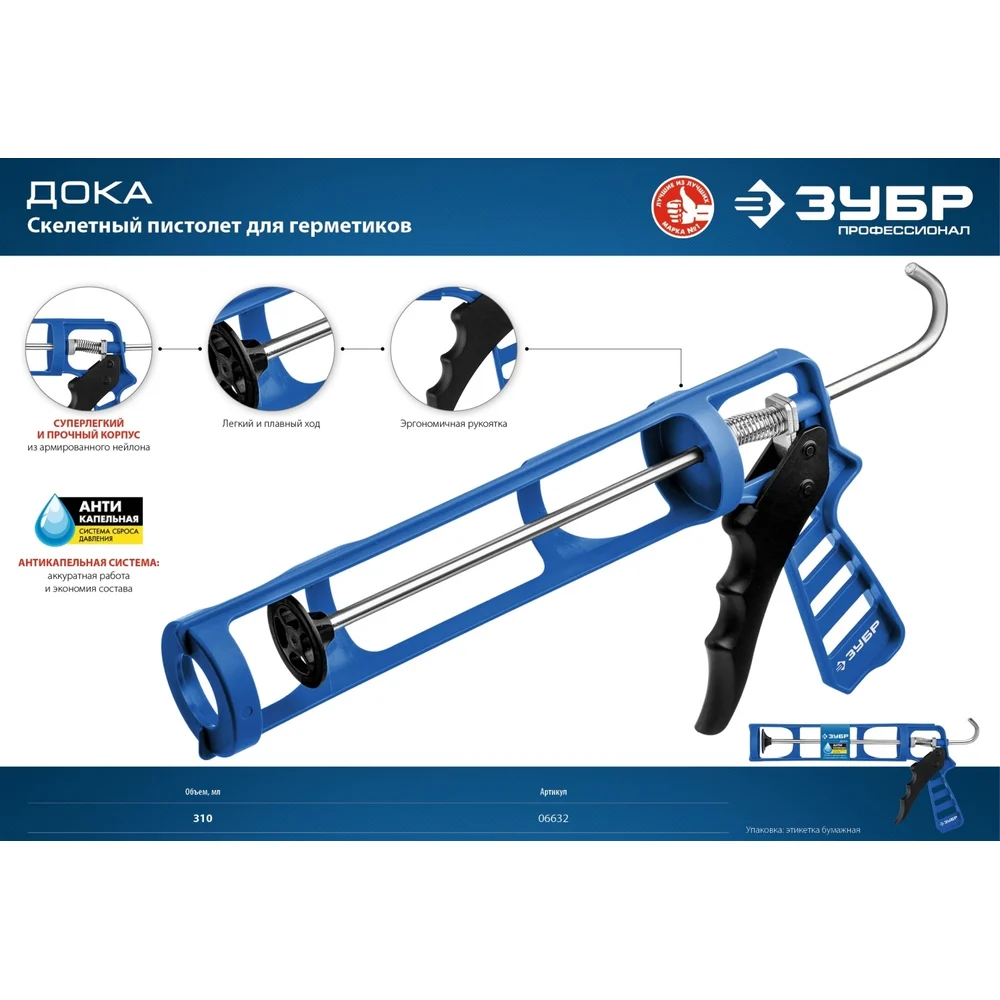 Купить Скелетный пистолет для герметика Зубр ДОКА Профессионал 310 мл 06632 по лучшей цене с доставкой - интернет магазин №1 в России