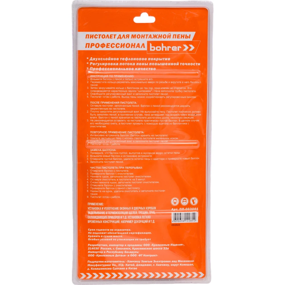 Купить Пистолет для монтажной пены BOHRER Профессионал двухслойное тефлоновое покрытие, регулировка потока ПП-003001 по лучшей цене с доставкой - интернет магазин №1 в России