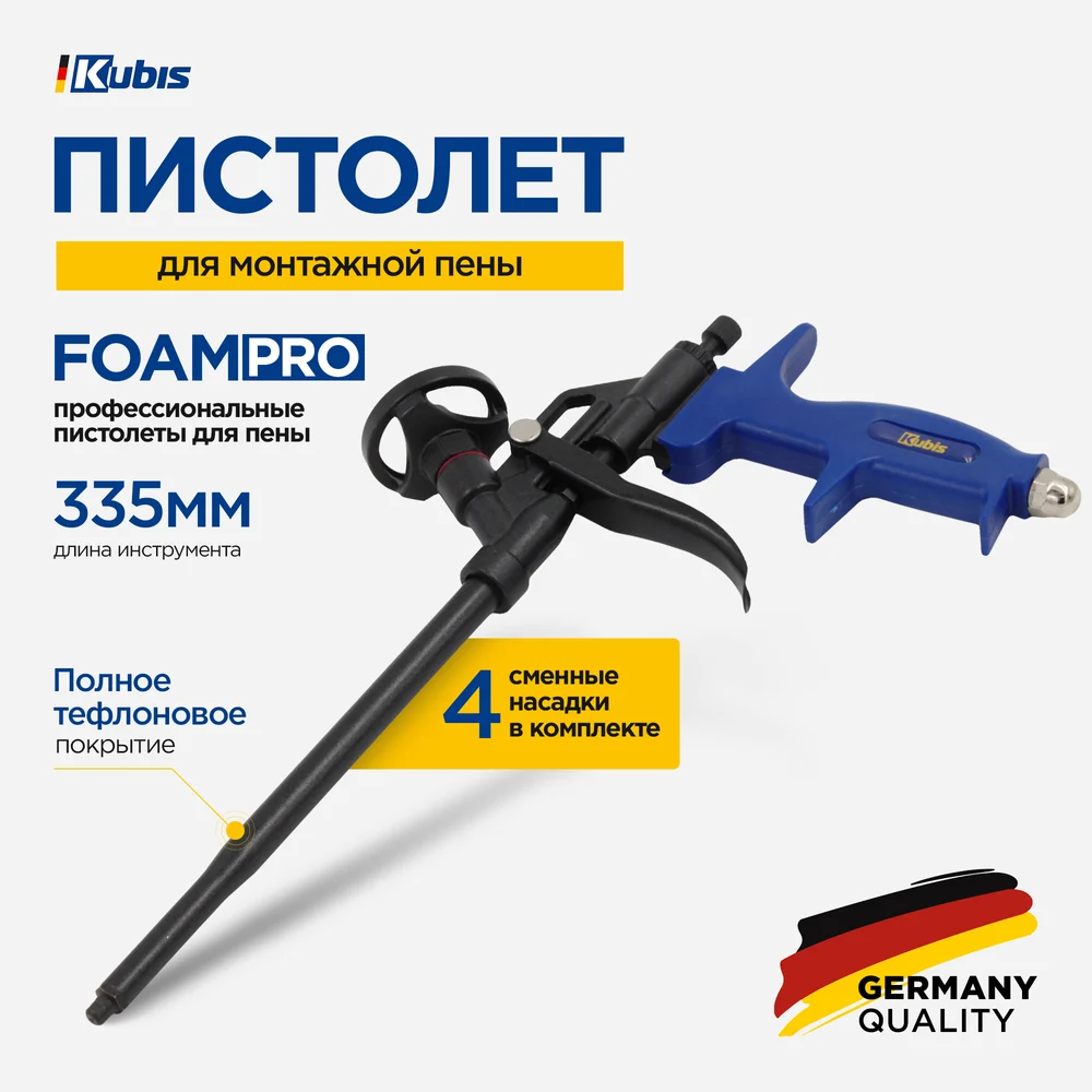 Купить Пистолет для монтажной пены KUBIS 335 мм, полное тефлоновое покрытие FoamPro 04-05-0435 по лучшей цене с доставкой - интернет магазин №1 в России