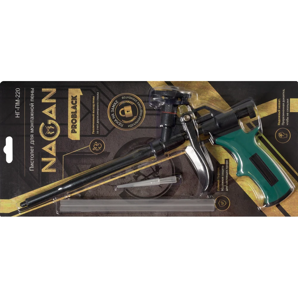 Купить Пистолет для монтажной пены NAGAN корпус с тефлоном, прорезиненная рукоятка НГ-ПМ-220 по лучшей цене с доставкой - интернет магазин №1 в России