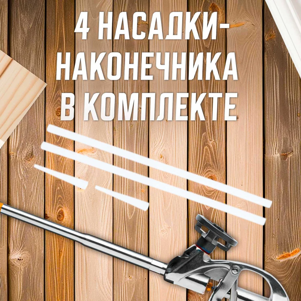 Комплектация Пистолет для монтажной пены; 4 насадки; Коробка