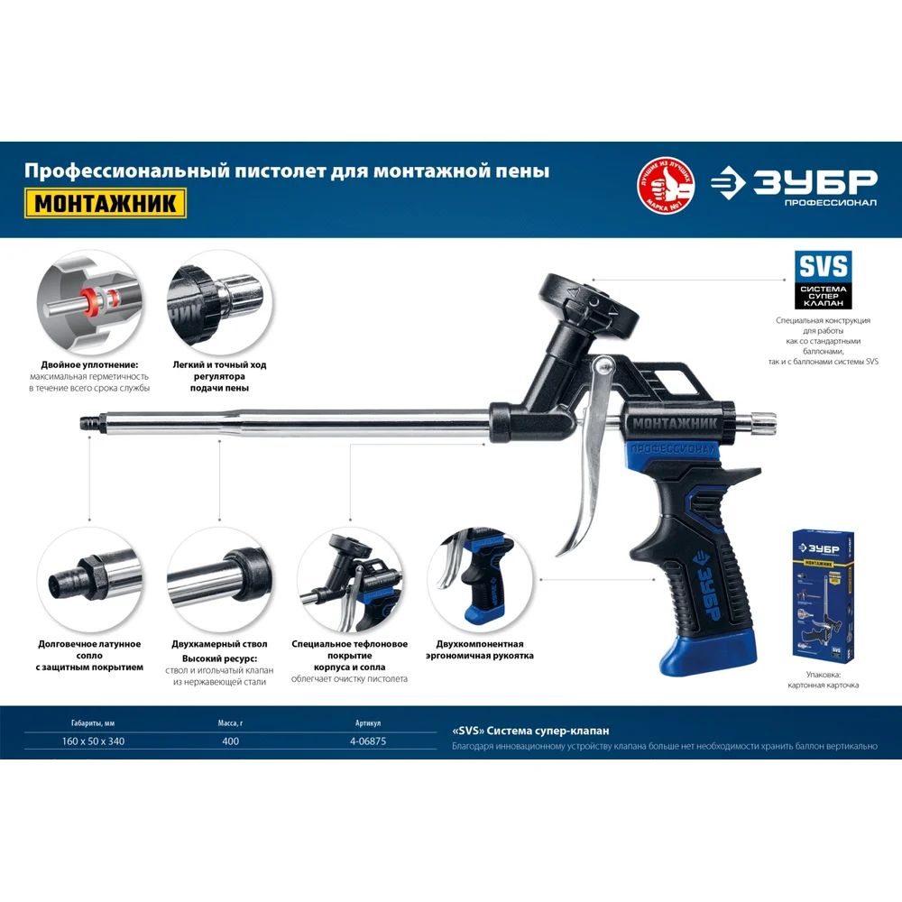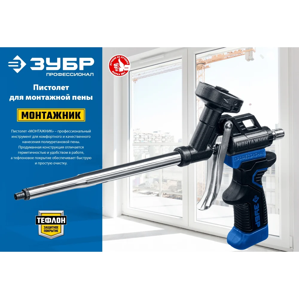 Купить Тефлоновый пистолет для монтажной пены ЗУБР Монтажник 4-06875_z02 по лучшей цене с доставкой - интернет магазин №1 в России