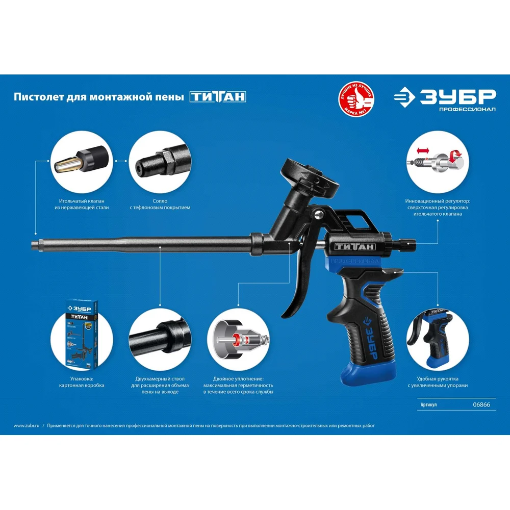 Купить Тефлоновый пистолет для монтажной пены ЗУБР Профессионал ТИТАН, (06866) 06866_z03 по лучшей цене с доставкой - интернет магазин №1 в России