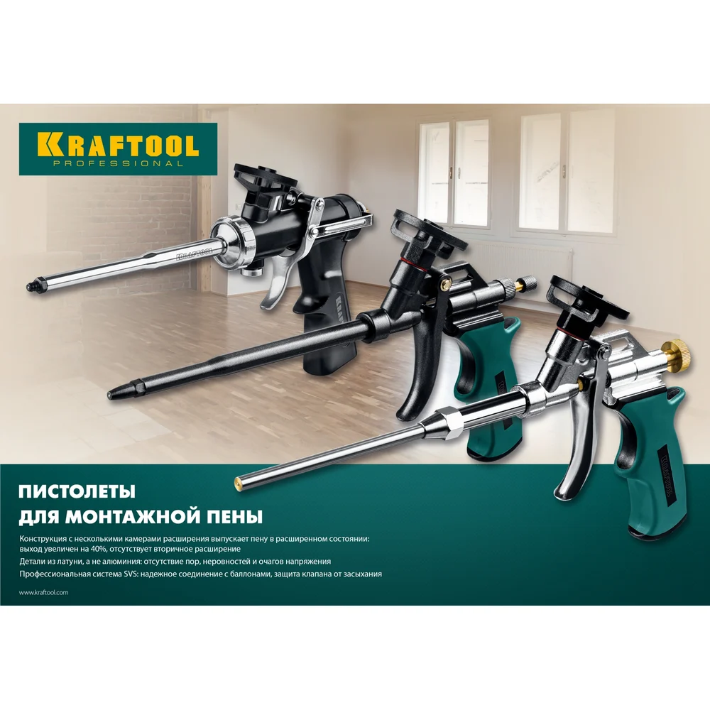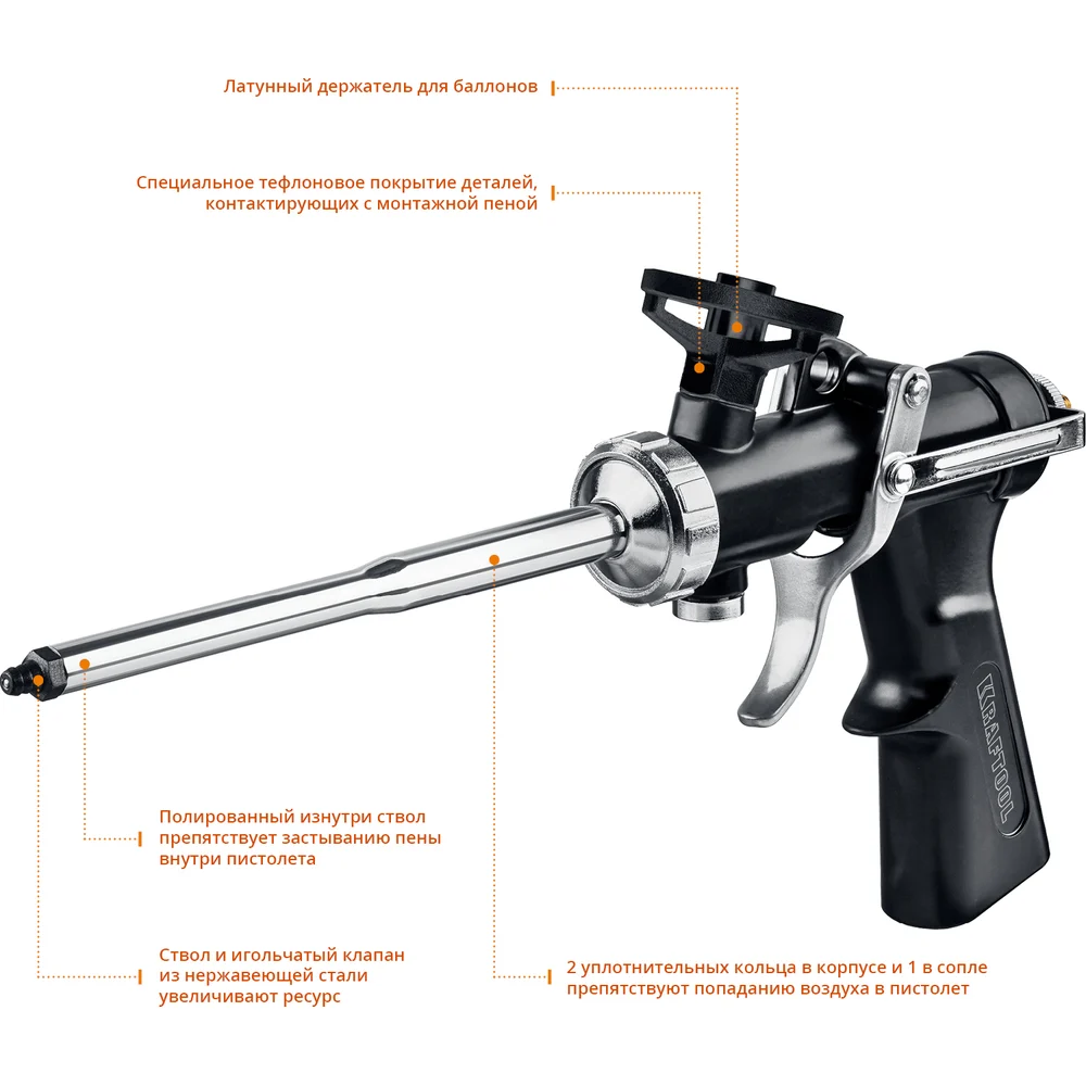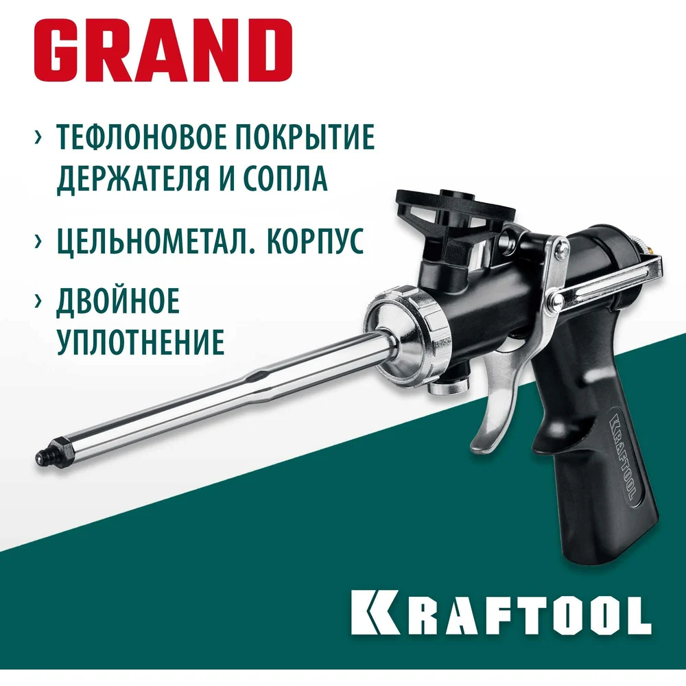 Купить Цельнометаллический пистолет для монтажной пены KRAFTOOL Grand 06853 по лучшей цене с доставкой - интернет магазин №1 в России