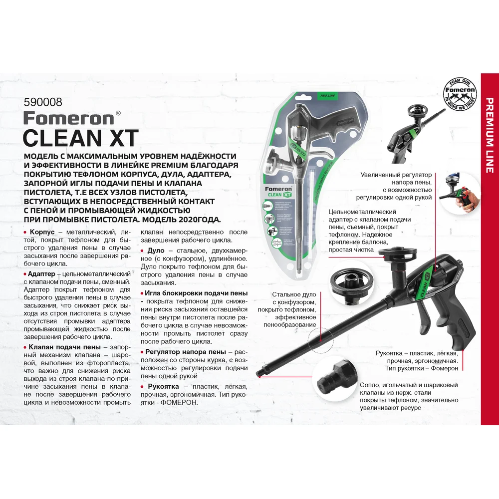 Купить Усиленный пистолет для монтажной пены Fomeron тефлоновое покрытие иглы и кольца-адаптера clean хт 590008 по лучшей цене с доставкой - интернет магазин №1 в России