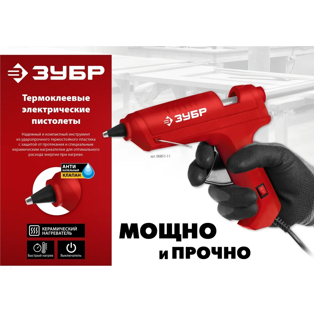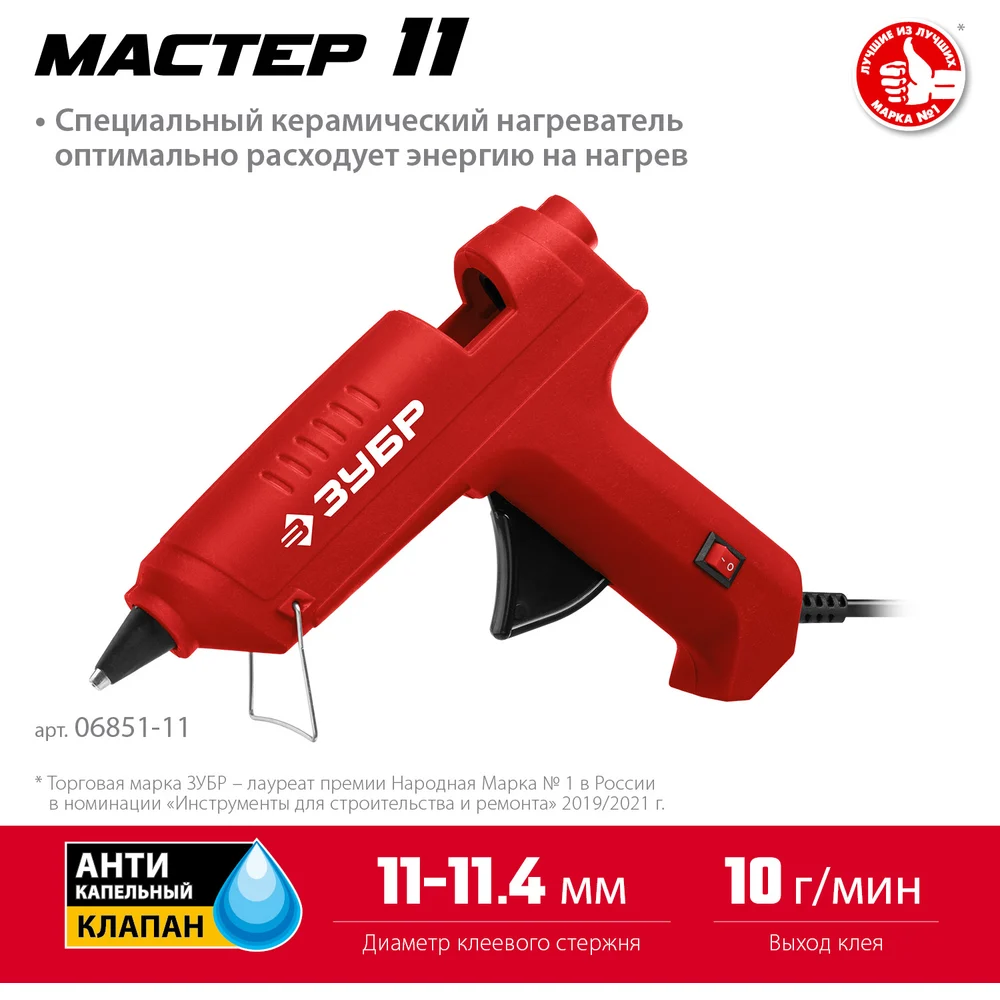 Электрический термоклеевой пистолет ЗУБР Мастер 11 d 11 мм, 10 г/мин 06851-11