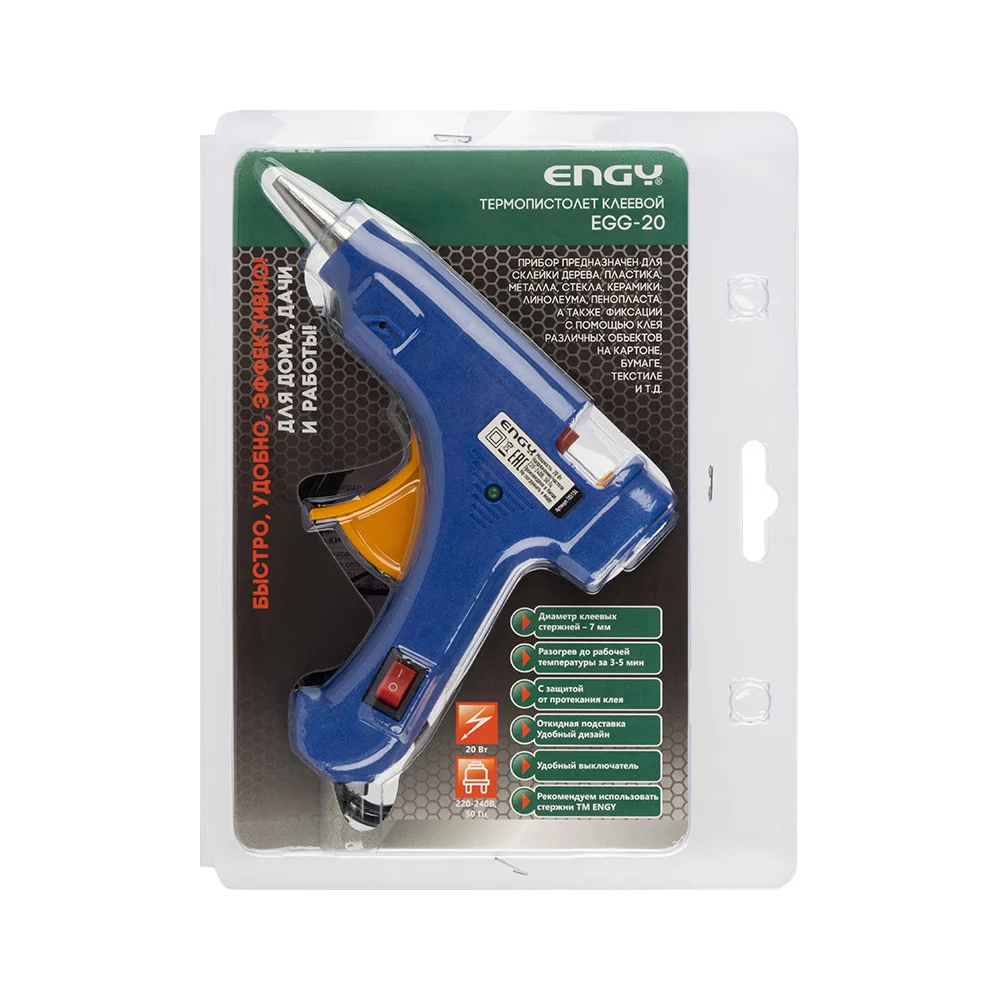 Купить Клеевой пистолет Engy egg-20 20 Вт, с кнопкой включения и антикаплей 105134 по лучшей цене с доставкой - интернет магазин №1 в России