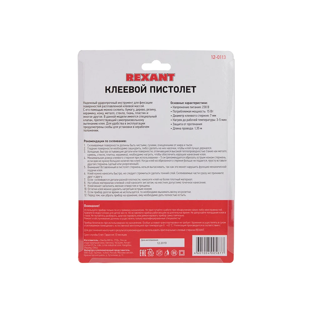 Купить Клеевой пистолет Rexant 15 Вт 12-0113 по лучшей цене с доставкой - интернет магазин №1 в России