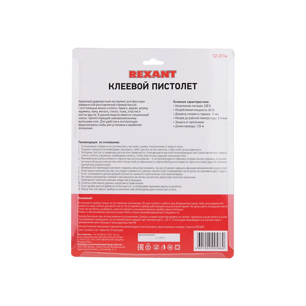 Купить Клеевой пистолет Rexant 60 Вт 12-0114 по лучшей цене с доставкой - интернет магазин №1 в России