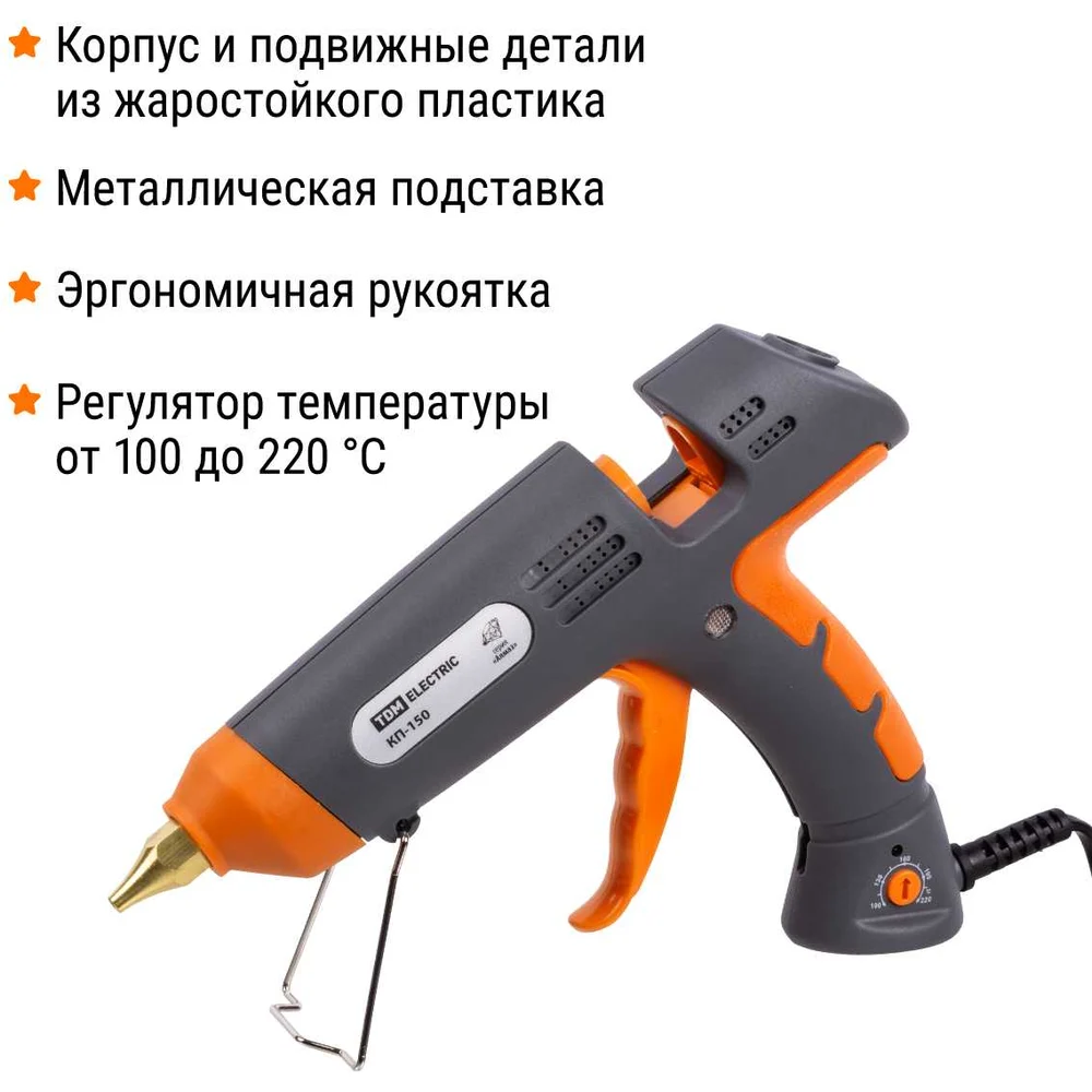 Купить Клеевой пистолет TDM ELECTRIC КП-150 11,3 мм, подставка, терморегулятор, шнур 1,5 м, 150 Вт, Т=220 С Алмаз SQ1024-0104 по лучшей цене с доставкой - интернет магазин №1 в России