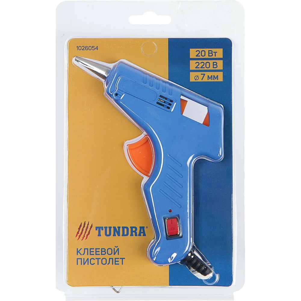 Купить Клеевой пистолет ТУНДРА 20 Вт, 220 В, выключатель, индикатор, длинное сопло, 7 мм 1026054 по лучшей цене с доставкой - интернет магазин №1 в России