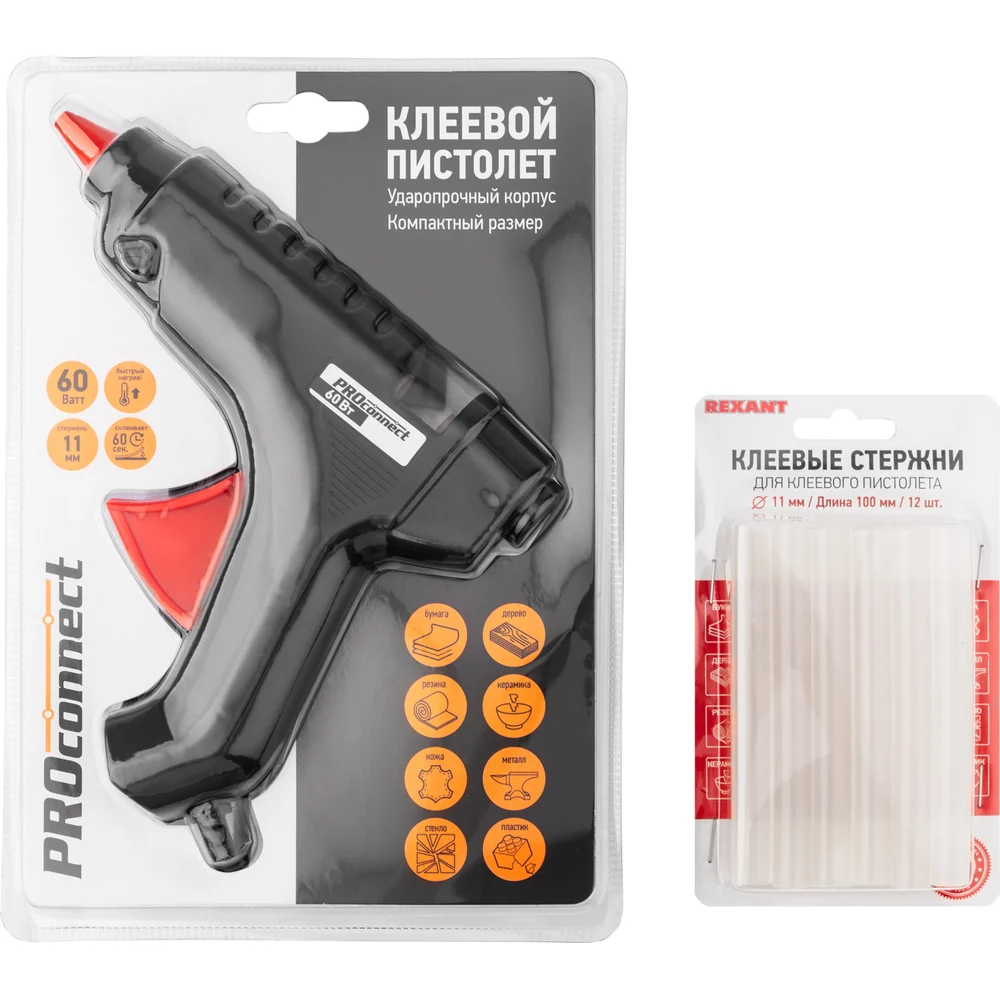 Набор для творчества REXANT пк03 пистолет 60 Вт, стержни 11 мм 12-1703