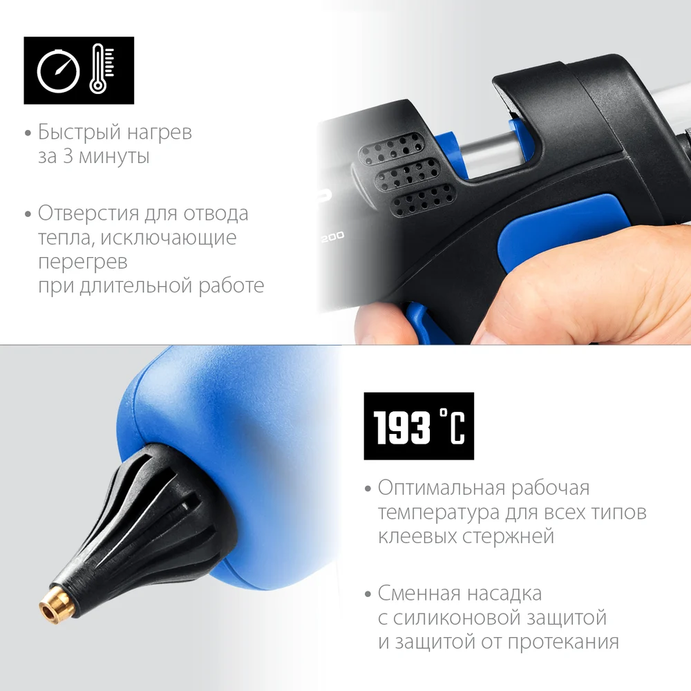 Купить Термоклеевой электрический пистолет ЗУБР Профессионал 200, d 11 мм 06852-11 по лучшей цене с доставкой - интернет магазин №1 в России