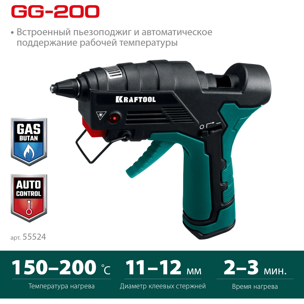 Купить Термоклеящий газовый пистолет KRAFTOOL GG-200 11 мм, 200C 55524 по лучшей цене с доставкой - интернет магазин №1 в России