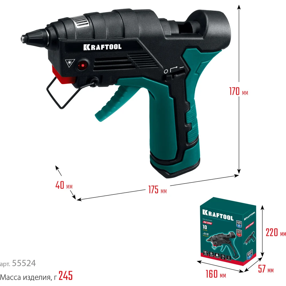 Термоклеящий газовый пистолет KRAFTOOL GG-200 11 мм, 200C 55524